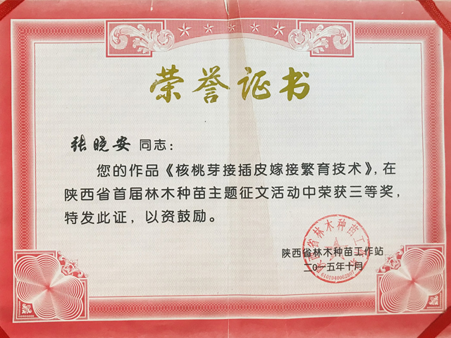 以上就是小编为大家介绍的树木嫁接论文获奖荣誉证书的全部内容,如果大家还对相关的内容感兴趣,请持续关注陕西杨凌华丰苗木有限公司